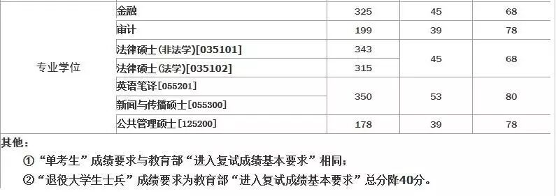 (图为专业学位初试成绩基本要求)